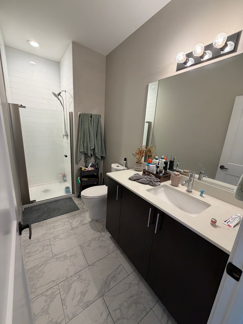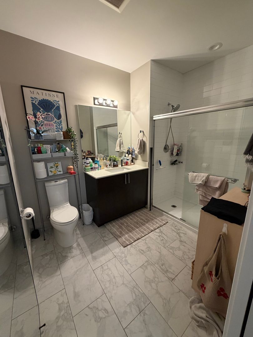 Located just steps from Wrigley Field, this modern 2-bedroom, 2-bath unit offers a perfect blend of style and convenience. The open kitchen features stainless steel appliances (including dishwasher and microwave) and quartz countertops, while the unit includes central heat and air, in-unit laundry, modern finishes throughout, and a private balcony. The primary bedroom includes an en-suite bathroom, and internet is included in the rent. The hallway features a coat closet for extra storage. Residents enjoy a modern elevator building with amenities such as a dog wash station and bike racks in the garage.