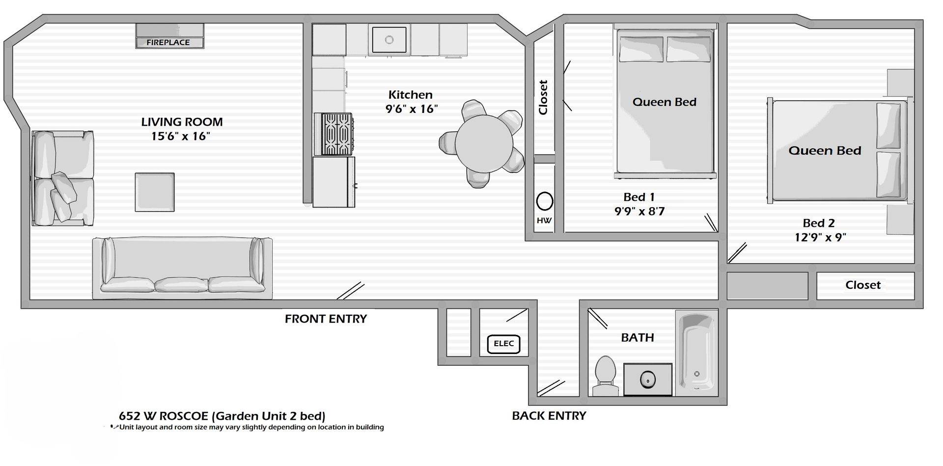 Beautiful 2Bed/1Bath Garden Unit In Lake View East