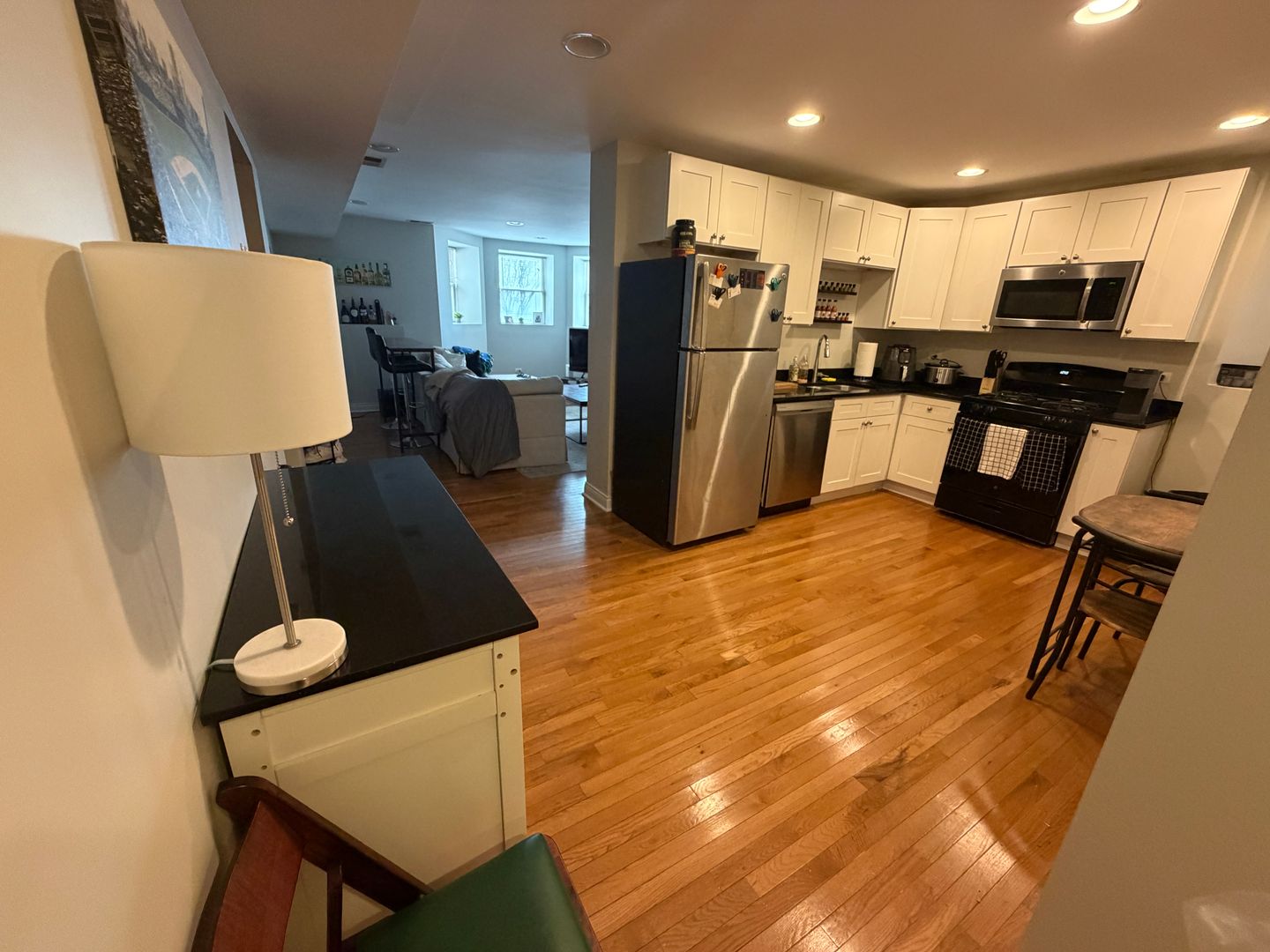 Brimming with charm and vintage character, this 2 bed, 1 bath garden apartment features stunning re-purposed hardwood floors, exposed brick, and a decorative fireplace in the living room. The kitchen is outfitted with stainless steel appliances including a dishwasher and microwave. Both bedrooms easily accommodate queen-sized beds, and the unit is equipped with central heat and air for year-round comfort. Residents can also enjoy a shared backyard space, a private storage locker and common area laundry. Street parking is available with a permit required for overnight parking.